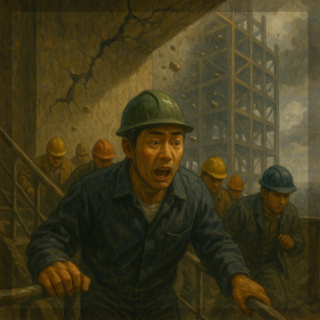 벽면을 따라 머리카락 같은 균열이 스르르 번지더니, 콘크리트 가루가 톡톡 떨어졌다. 철근이 삐걱거렸고, 바닥은 미세하게 진동했다. 사람들은 바람 때문이라며 스스로를 다독였지만, 불안은 이미 샹들리에까지 흔들어 놓았다.