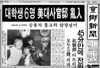 당시 멍청래와 등신들이 외교관저 정문 등을 점거하고, 쇠파이프를 휘두르고 사제 폭발물, 시너를 뿌려 방화와 폭발을 시도했으나, 다행히 불발되고 내화성 카펫 등의 이유로 불이 붙지 않아 인명피해는 발생하지 않았다. 그로 인해 국가보안법, 집회 및 시위 관련법, 특수공무집행방해치상, 현주건조물방화예비, 폭력행위처벌법, 화염병·화약류 관련법 위반 등 혐의로 징역 2년 확정 판결을 받았다.