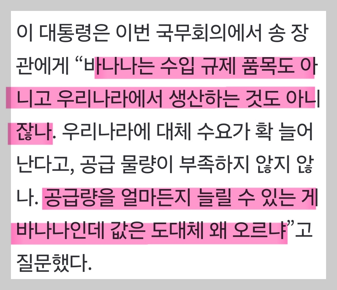 호텔경제학의 대가 찢째명이 국무회의에서 비싸진 바나나 값에 대해 이해할 수 없다는 반응을 보였다. 바나나 값이 비싸진 이유에 대해 호텔경제학을 대입해 본다면 당연히 납득할 수 없는 금액이 맞다. 또한 과일값은 늘상 법카로 긁어 댔으니, 코끼리처럼 과일을 처먹었던들 그 가격이 얼마인지에 대한 인식은 전혀 없었을 테니까.