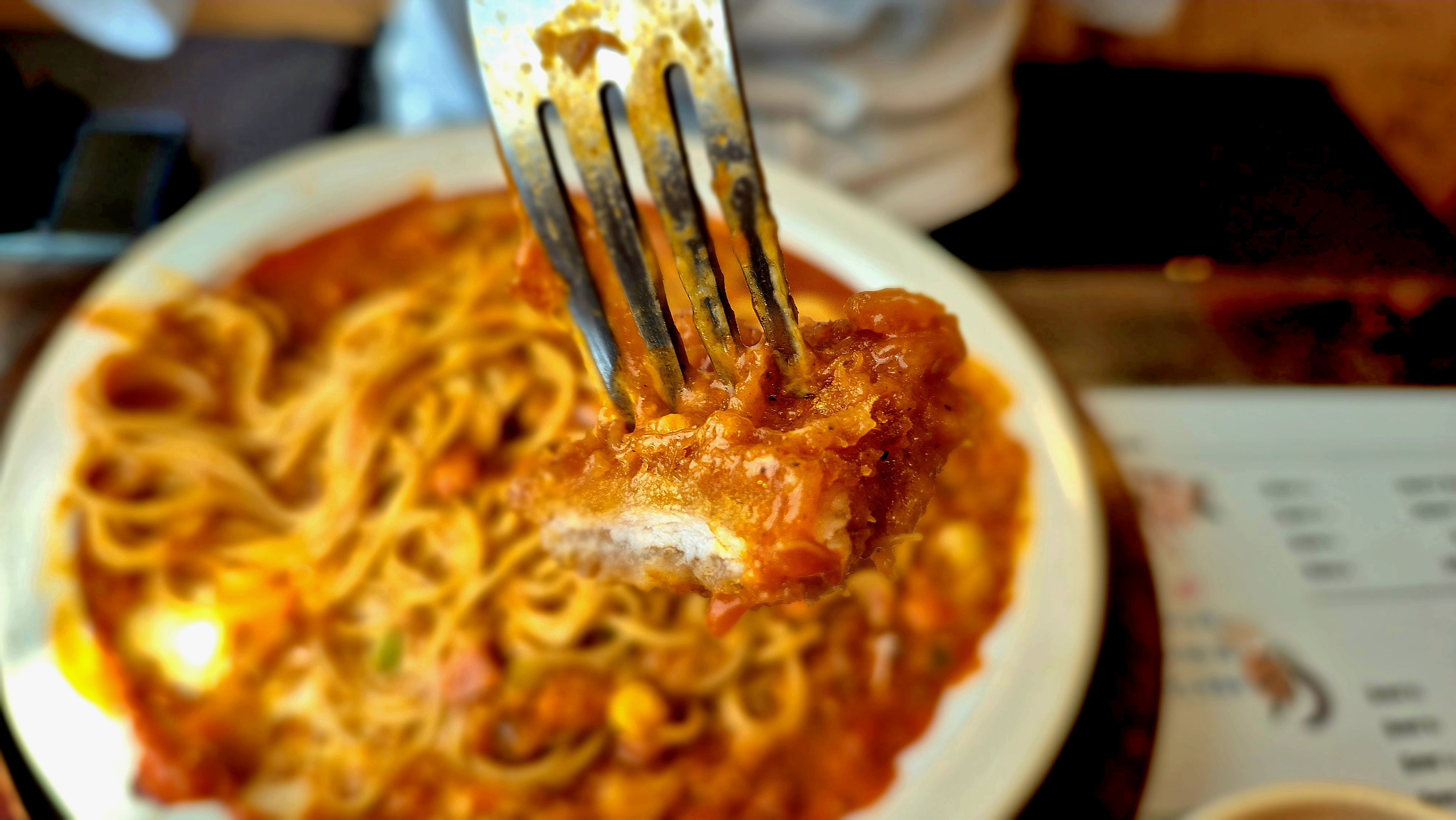 아무튼 옛날 분위기의 스파게티와 돈까스를 주문했는데, 등장한 모양새는 나쁘지 않았지요.