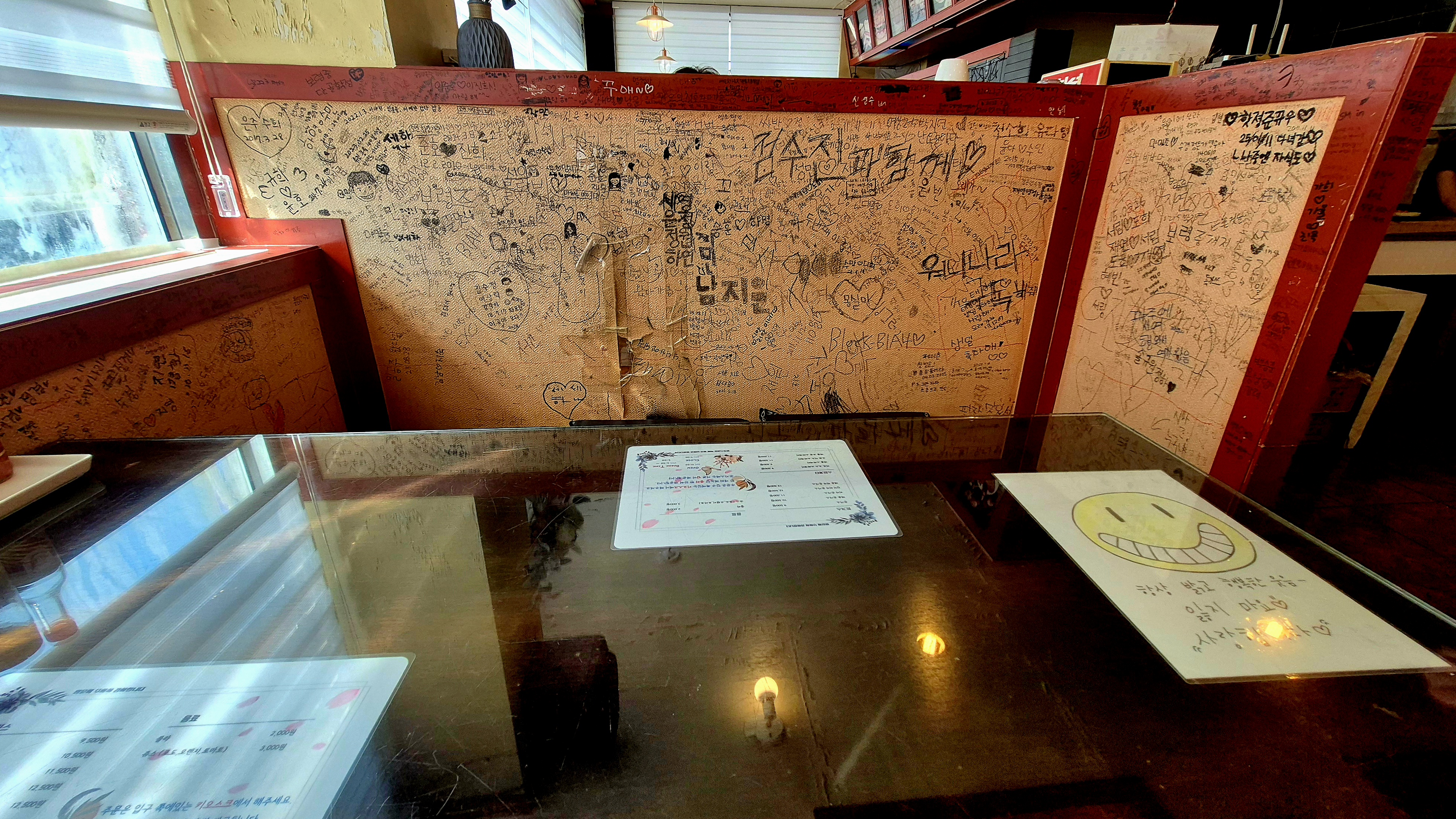 역시나 올드 분식집의 트레이드 마크, 낙서가 보입니다. 여기서 사랑을 확인코자 이름 사이에 하트를 그려 넣은 커플들은 다들 잘 살고 계실지 궁금해지는군요.