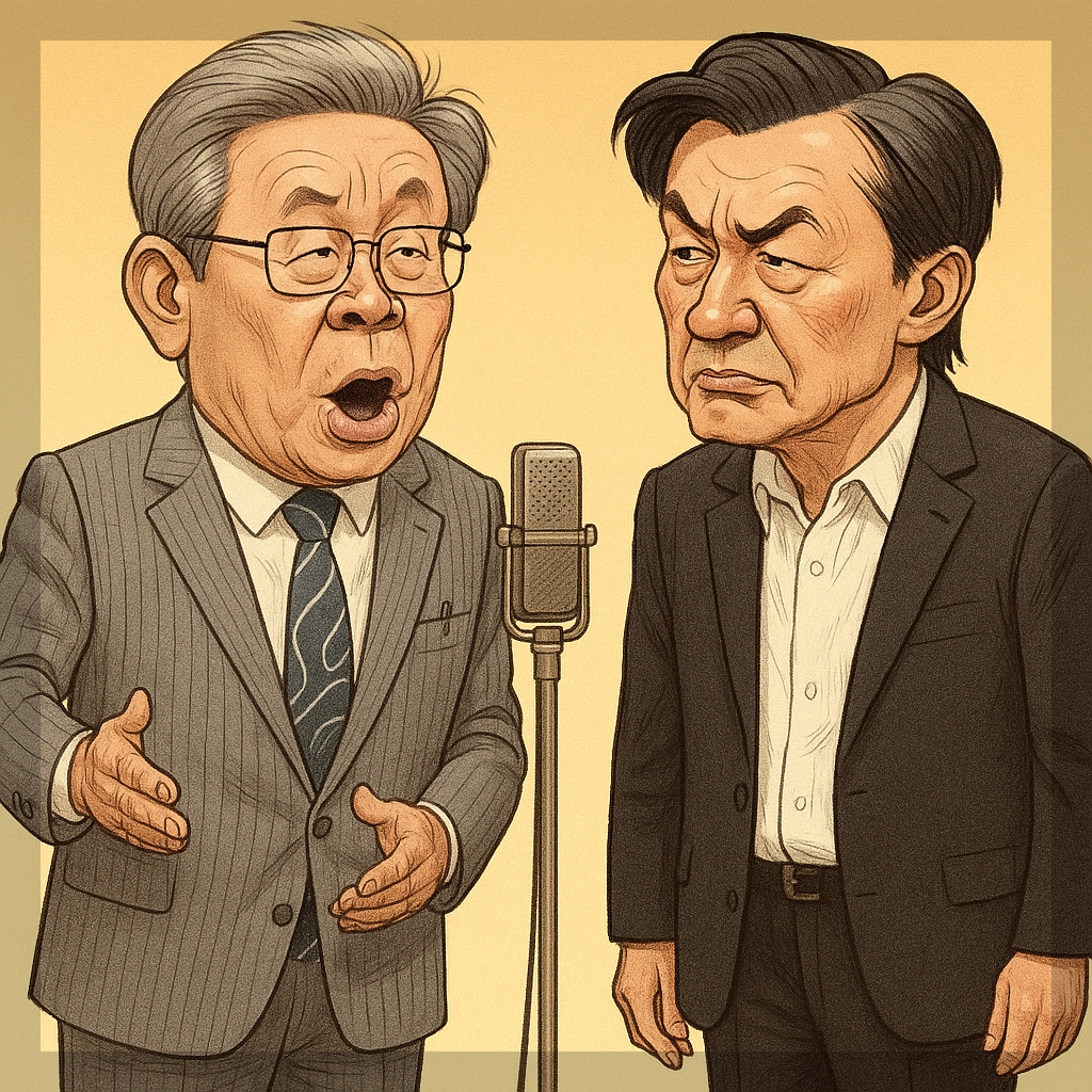 침묵이 아니라 ‘웃음’. 마치 오랜 만담 콤비가 서로의 타이밍을 아는 듯, 좃국이 보케(ボケ, 바보역) 이라면 찢째명은 츠코미(ツッコミ, 태클역) 역할에 충실했다. 진지한 척 웃기고, 웃긴 척 진지하게 굴며, 결국 관객은 그들의 리듬에 속는다. 그 웃음 뒤에는 경제 위기, 세금 폭증, 부패, 불신이 깔려 있다. 그런데도 국회는 쇼윈도 무대가 되고, 국민은 티켓값도 모른 채 그들의 ‘만담’을 들어야 한다. 심지어 그들의 사생팬들은 티켓값을 지불하고 쫓아다니며 환호한다.