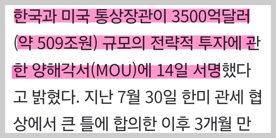 그런데 이번 '팩트시트'에서 드러난 기사 내용에는, 3500억 불 규모로 찢이 서명을 했단다. 그렇다는 건 찢이 탄핵당할 짓을 본인 스스로 결정했다는 점이고, 이는 대한민국 국익에 큰 손실을 야기시킬 불공정 행위를 알고도 당당히 임했단 것이다.