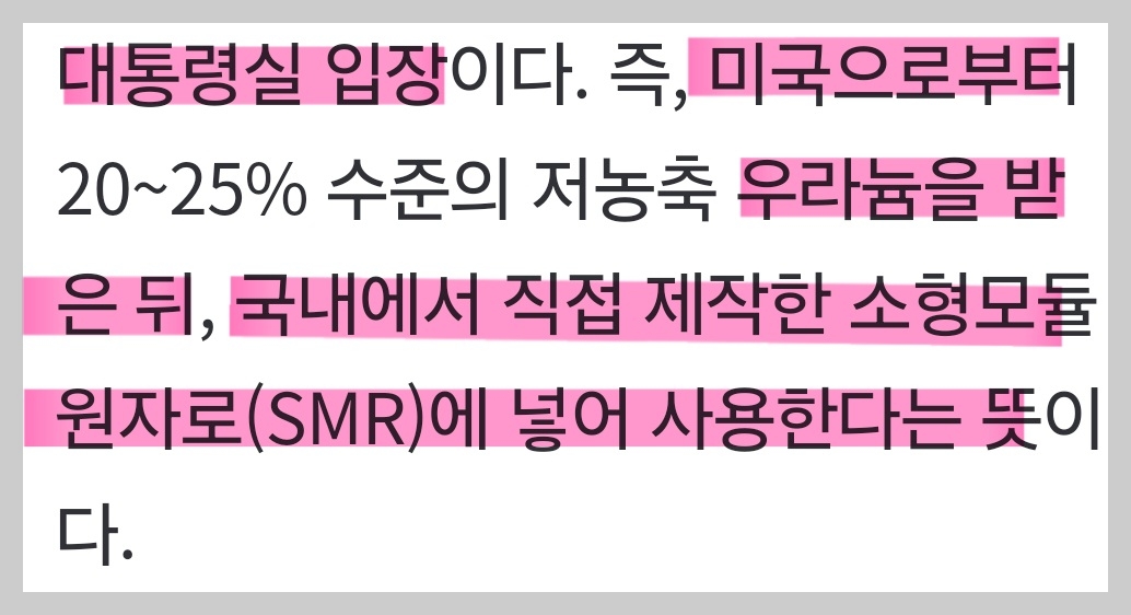 우라늄 농축과 사용 후 핵연료 재처리 권한도 미국 정부 지지를 확보하는 데 성공했다”라고 밝혔다.