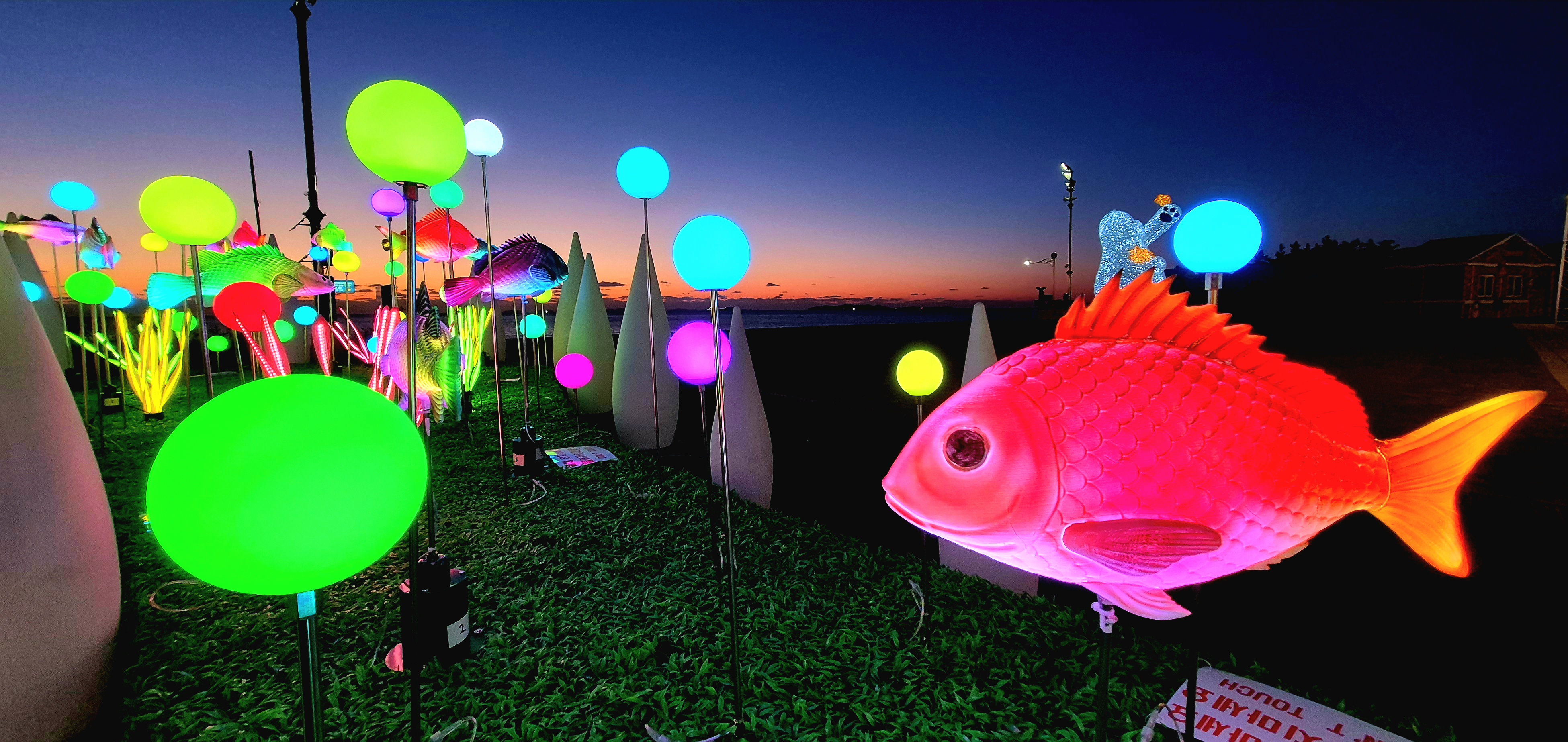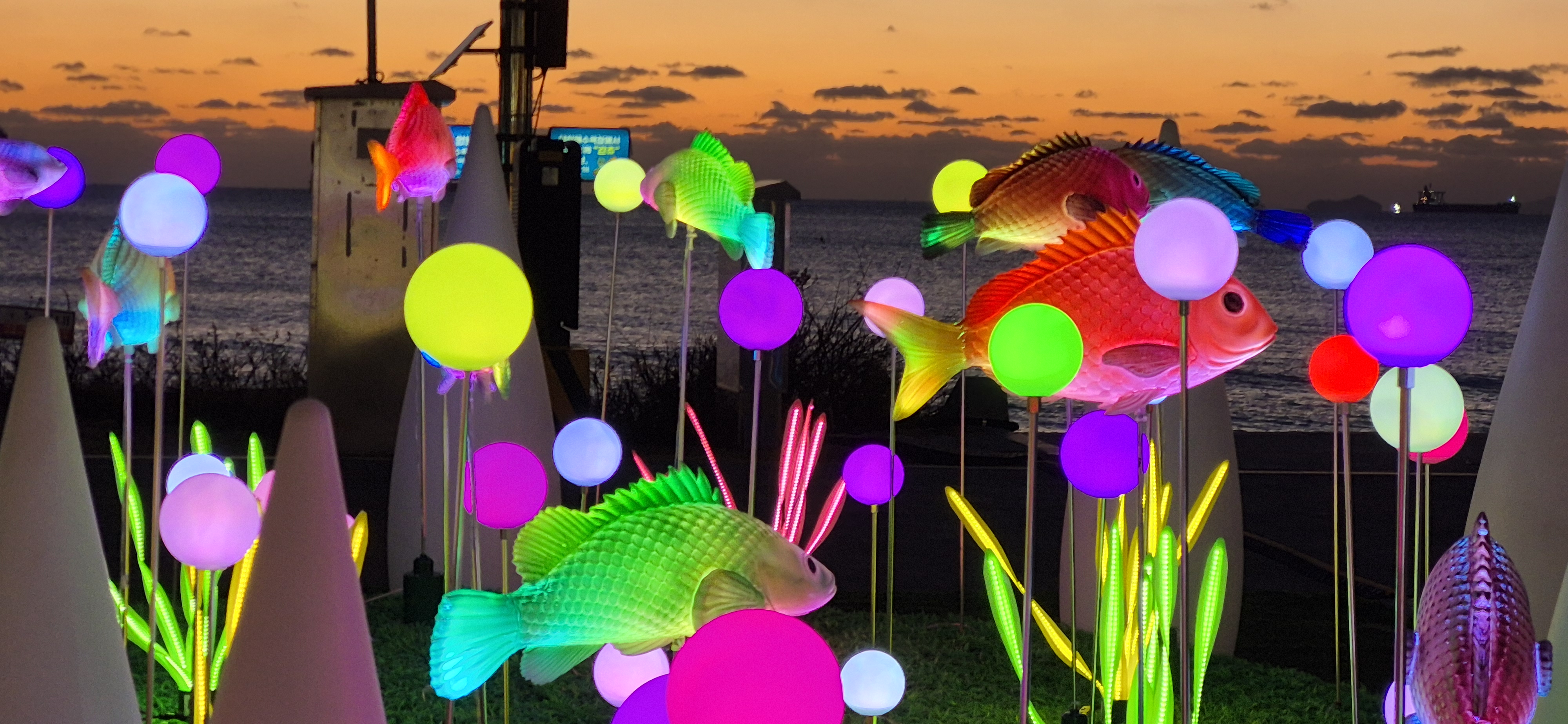 삼성 갤럭시 S23 FE(SM-S721N) 스마트 폰 모델로 찍은 사진들이다. 서해 노을을 배경으로 조명 조형물 전시를 하기에 담아보았다.