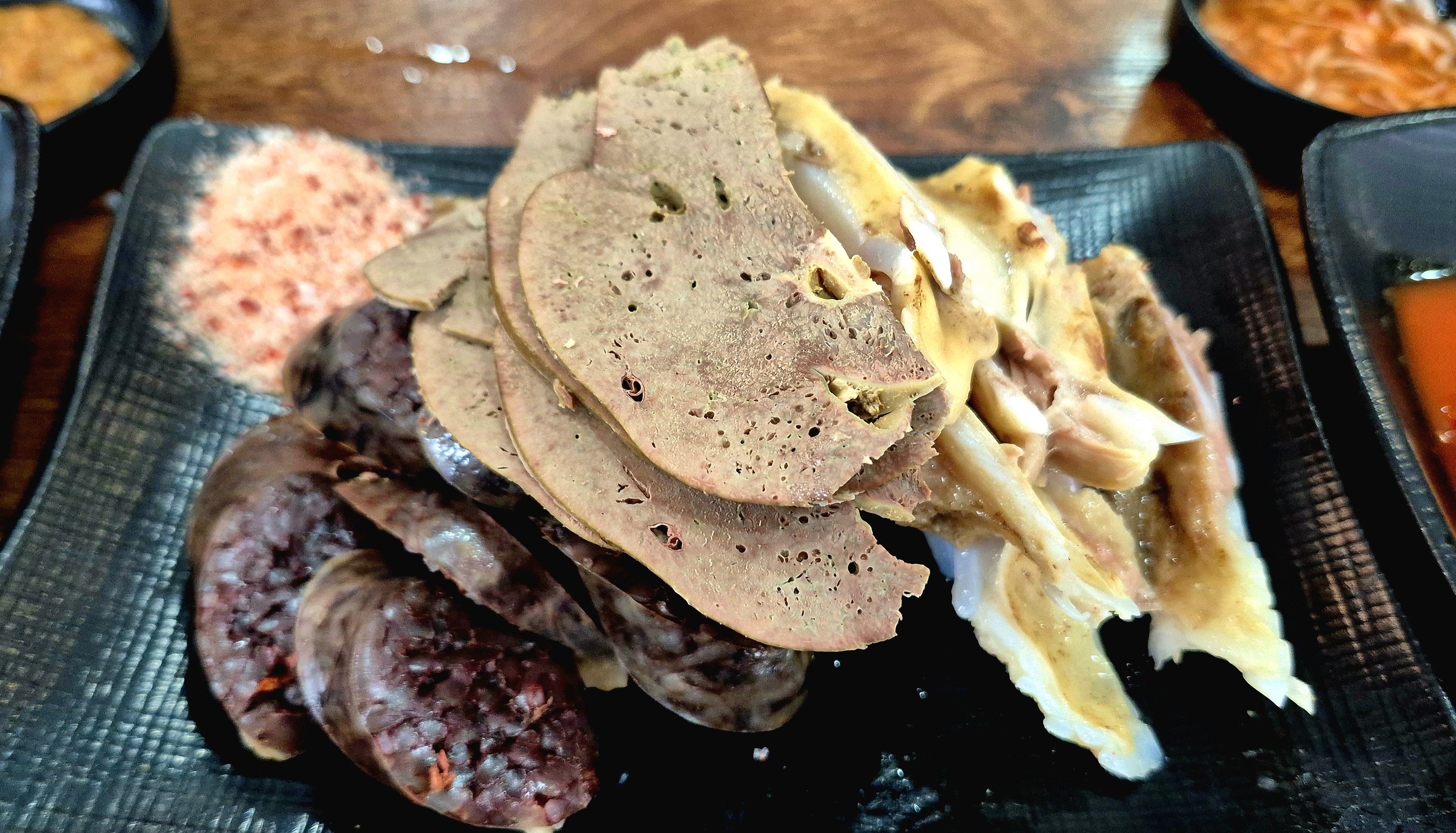 일단 앉으면 바로 모둠순대가 써비쓰로 나오는데, 식사량이 많은 젊은 친구들은 든든하게 한 끼를 해결할 수 있는 가성비를 충분히 갖추고 있다 여겨지네요.