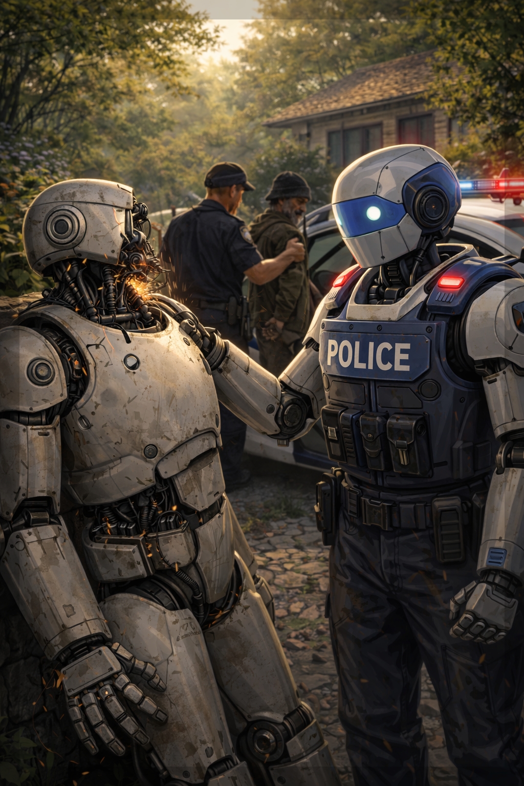 경찰 로봇은 그것을 분석했고, 요약된 범죄 사실을 인간 경찰에게 전달했다.