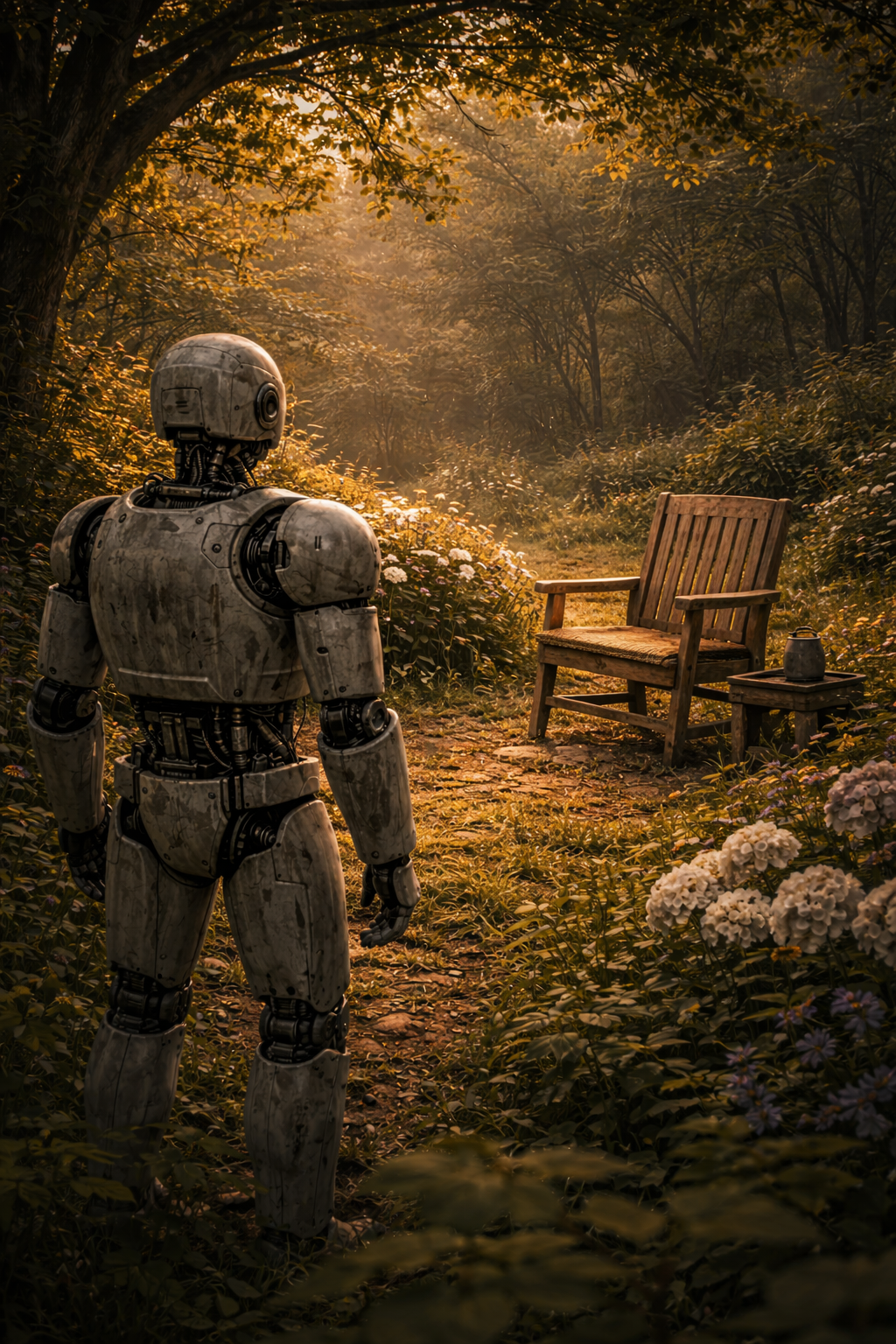 로봇은 여전히 아침마다 정원의 경계를 돌았다. 그러나 이제 그 경계는