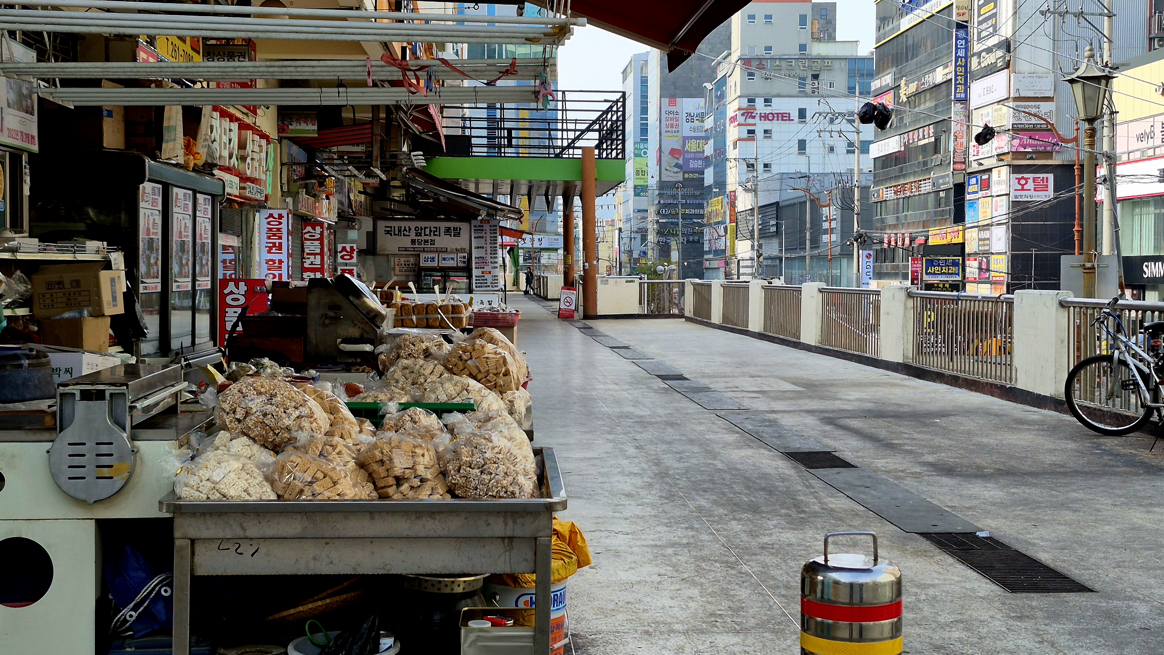 그리고 다시 길을 찾아 1층 안으로 들어섰더니 음식점들이 모여있는 푸드코트가 보이더군요. 여기도 손님은 없어 보였고 낙후된 전통시장의 미관만이 지저분하게 나뒹굴듯 복잡하게 꼬인 전선만큼이나 답이 없어 보였습니다.