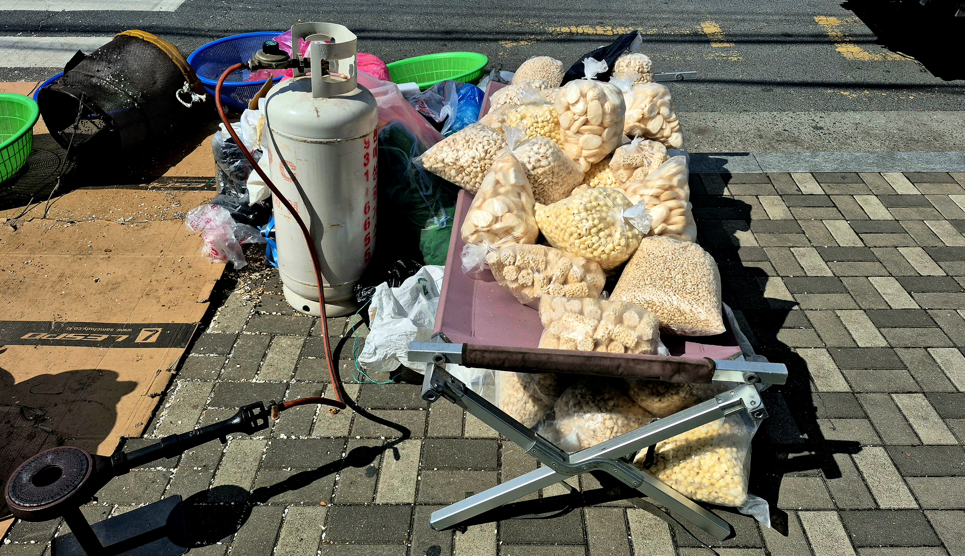요즘은 서울이나 수도권에서는 이런 뻥튀기 기계를 거의 볼 수 없는 듯합니다. 이제는 지방의 장날에나 가야 가끔 구경할 수 있는 풍경이 되었지요. 손으로 돌리던 기계에도 모터가 달리고, 세월은 그렇게 사람의 수고를 조금씩 덜어줍니다. 그 모습을 보고 있자니 사라져 가는 장터의 소리와 냄새가 잠깐 다시 살아나는 듯해 괜히 마음이 아련해집니다.