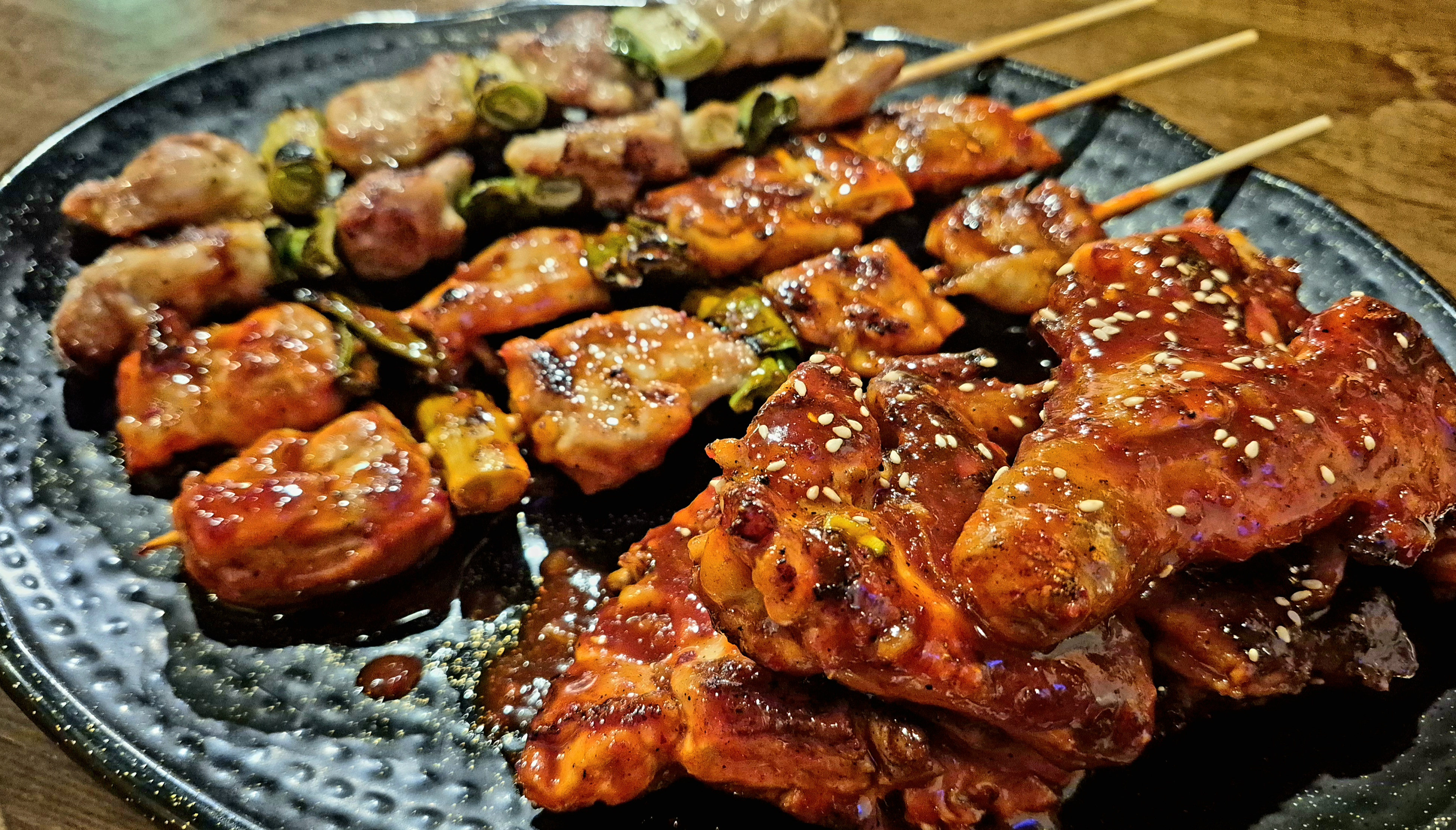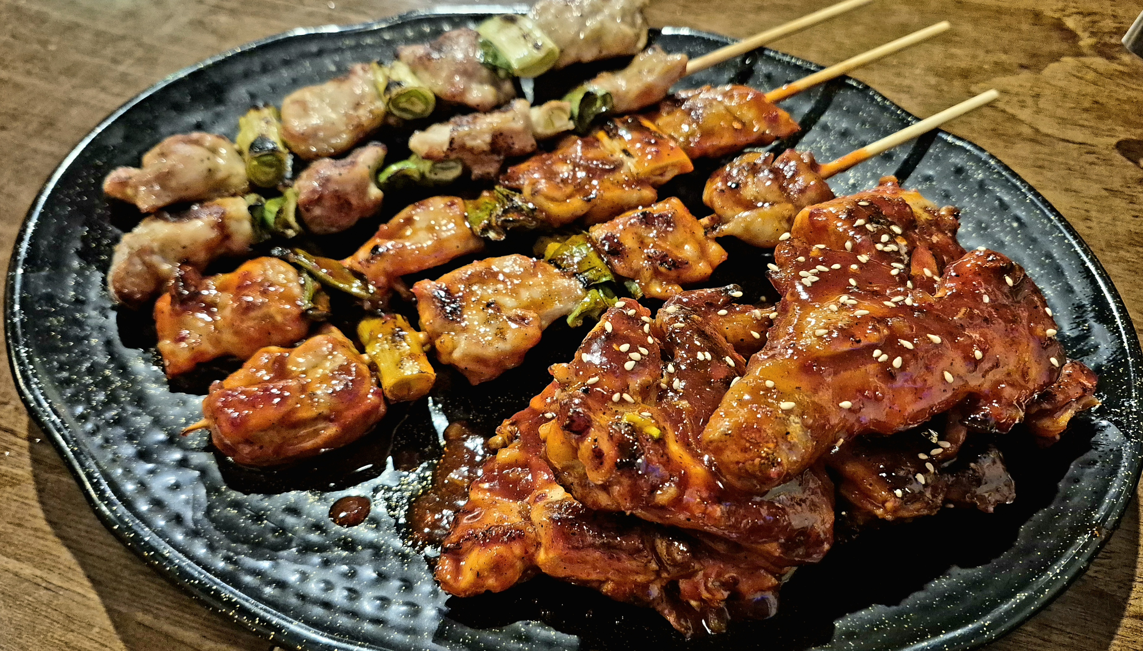 우선 소금구이 꼬치를 먹어봤는데 역시 한국 음식답게 모양과 규모면에서 상당히 큼직큼직했습니다. 하지만 개인적으론 퍽퍽 살과 일본꼬치와의 차별성 때문에 그닥 선호하는 편은 아닙니다만, 맛은 괜찮네요.