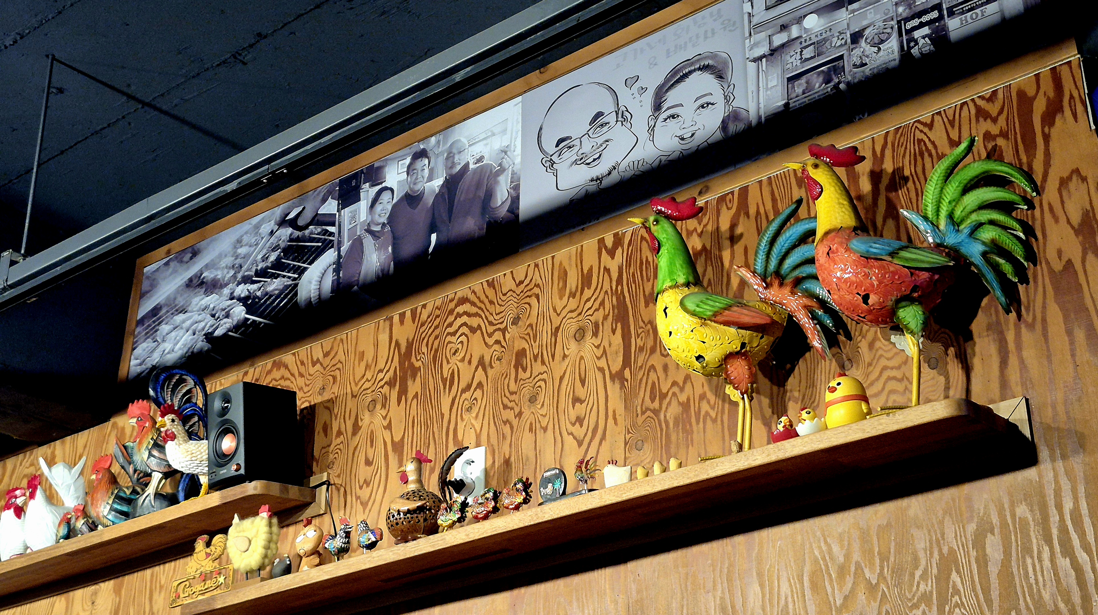 매장 안으로 들어서니 백종원이가 맛의 기밀을 슈킹 하기 위해 그럴듯한 웃음으로 기념 촬영을 하는 사진과 닭 기념품들이 놓여있었습니다.