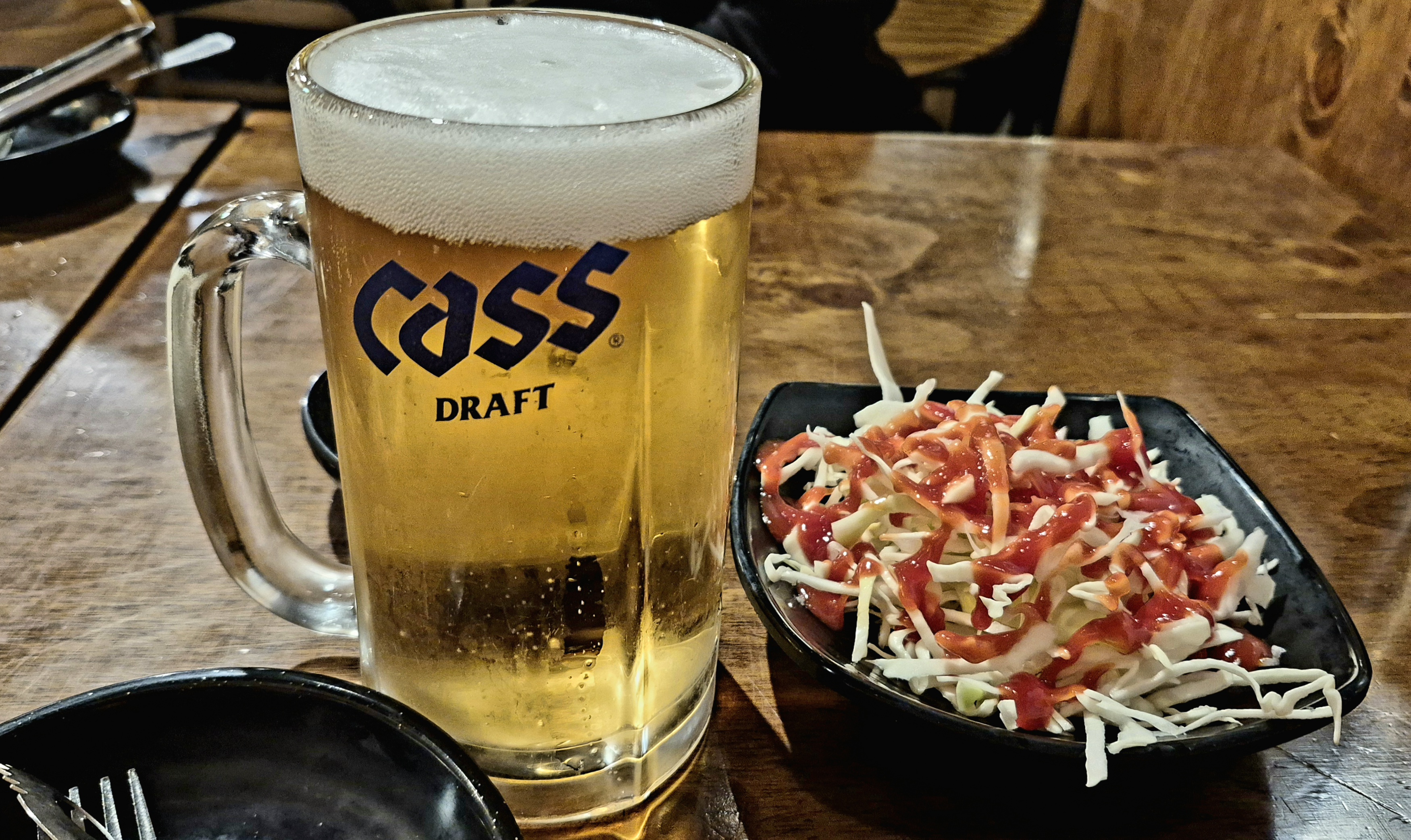 이곳 추천 메뉴는 '고가네 세트'입니다. 둘이 먹기에도 충분한 양이고 술안주로도 딱인 모양인가 봐요. 일단 쌩맥 한 잔 먼저 먹어보도록 하겠습니다.